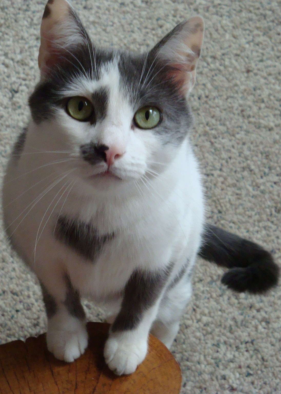 As you can see from the picture, he was a handsome boy. Though he lived to be eight, he was always a boy. He loved to play, loved to love, and loved to give kisses. The stance in the picture is where he is asking for kitty kisses.
